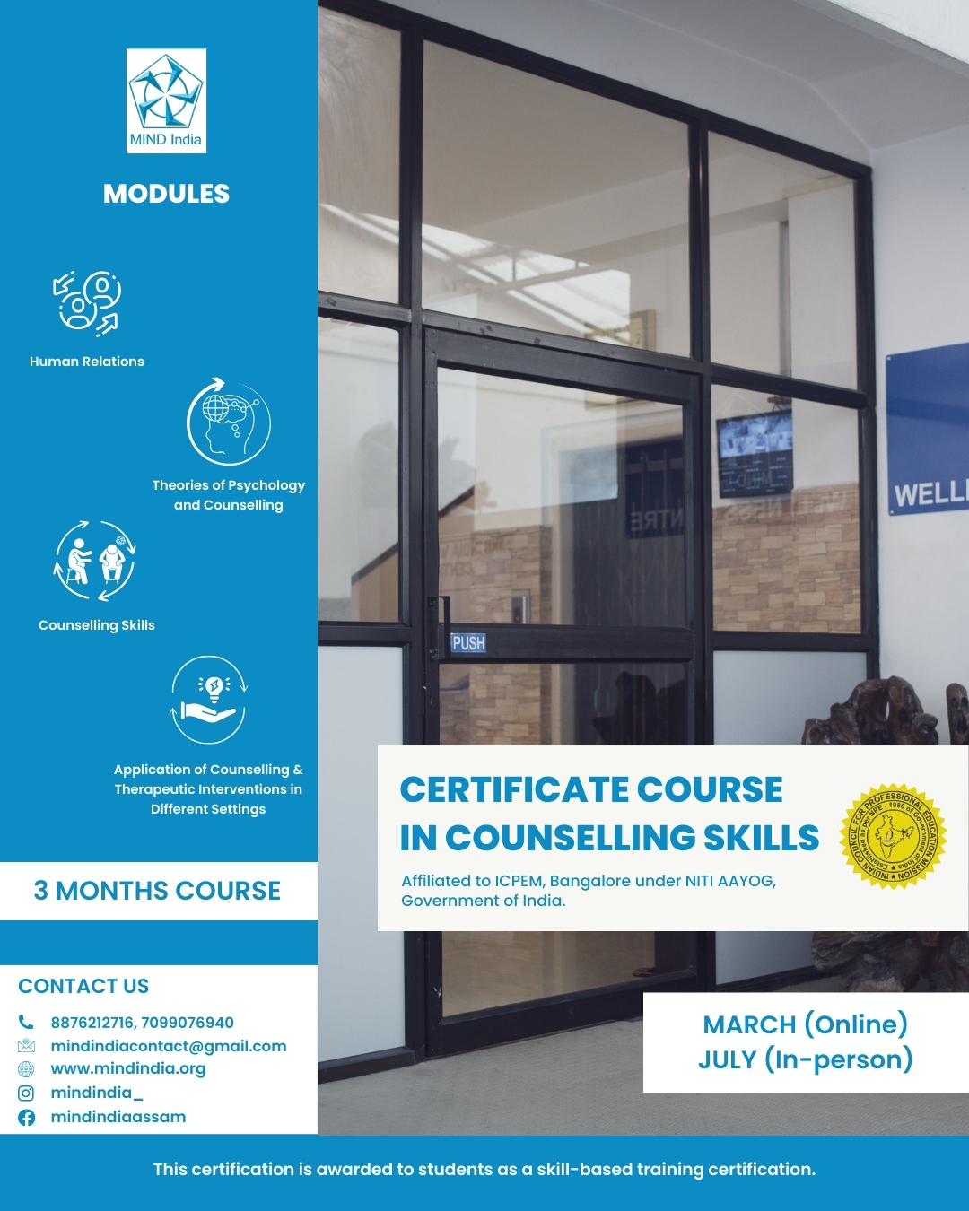MIND India, Institute of Positive Mental Health & Research (January 20, 2006) is one of the first bodies in the North Eastern Region of India, to work for the cause of ushering in the benefits of holistic health, wellbeing and social change to the general population through counselling and other psycho social interventions. MIND an acronym for Mental and Intellectual Needs Development is the driving principle on which the society MIND India has positioned itself.