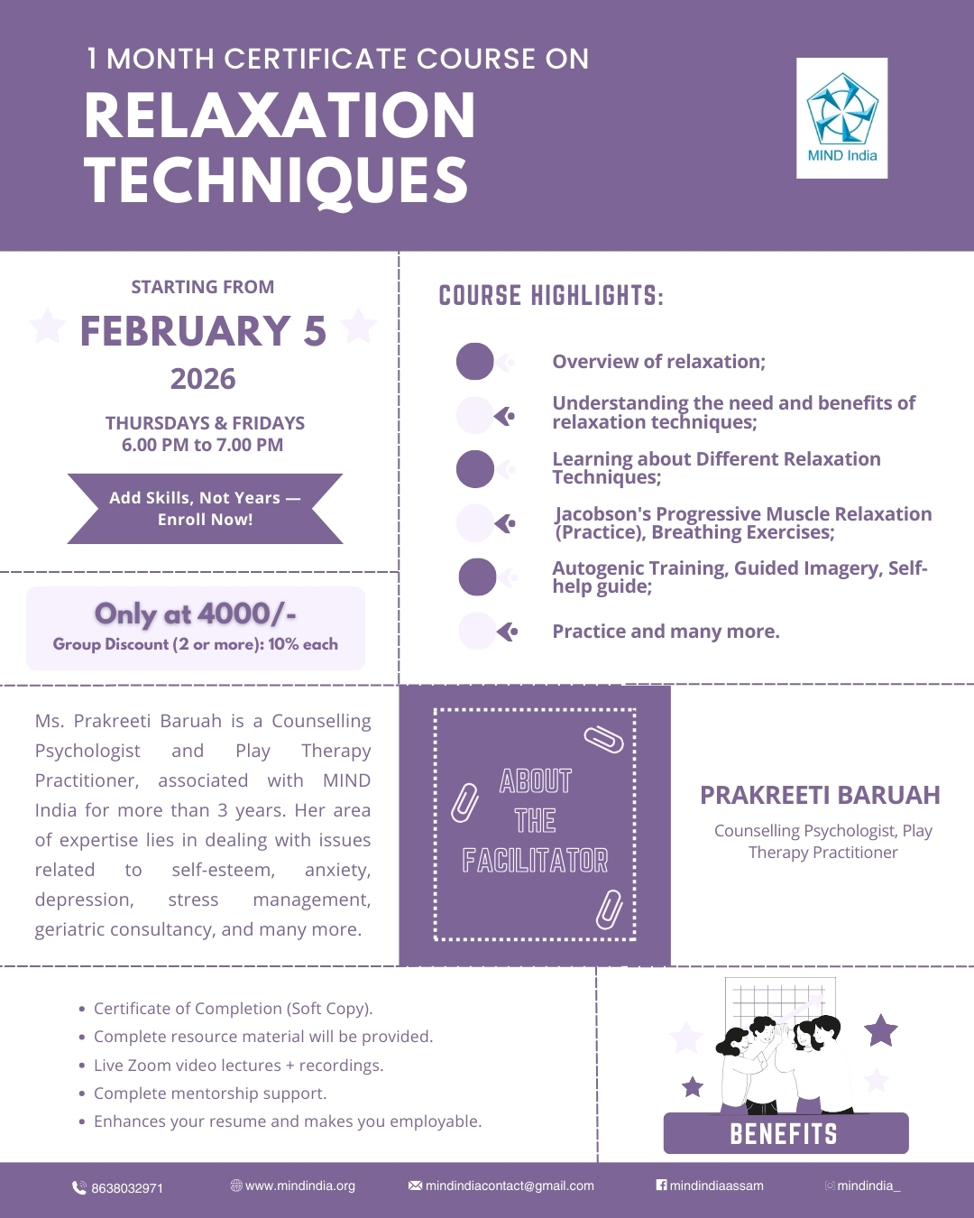 “I believe, unconditional acceptance is the first step to the path of self-discovery”. With an increasing number of people suffering from depression, unfulfilling relationships, workplace disharmony, job dissatisfaction, marital discord, the general stress of daily living, suicidal ideation, etc., the inclusion of wellbeing has become a necessity within the lifespan of each individual. Keeping this in mind, MIND India has been working relentlessly to enhance positive mental health through the mission to enable people to choose change.